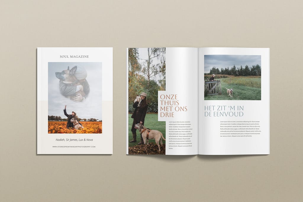 In de session fee van 350 euro zit jouw Soul Magazine inbegrepen, maar de session fee omvat nog geen digitale beelden of fotoproducten. Die kies je op je reveal&order.